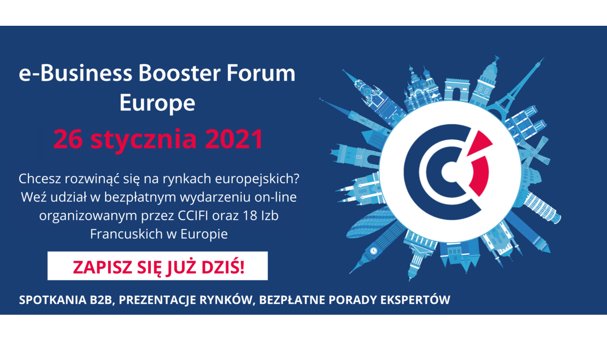 Wraz z CCI France International (Zrzeszeniem Francuskich Izb za granicą) oraz 16 Izbami francuskimi zapraszamy do udziału w wyjątkowym, całkowicie darmowym wydarzeniu on-line, w którego trakcie pozyskasz szereg informacji i kontaktów na temat możliwości eksportu i rozwoju biznesu na rynkach europejskich.