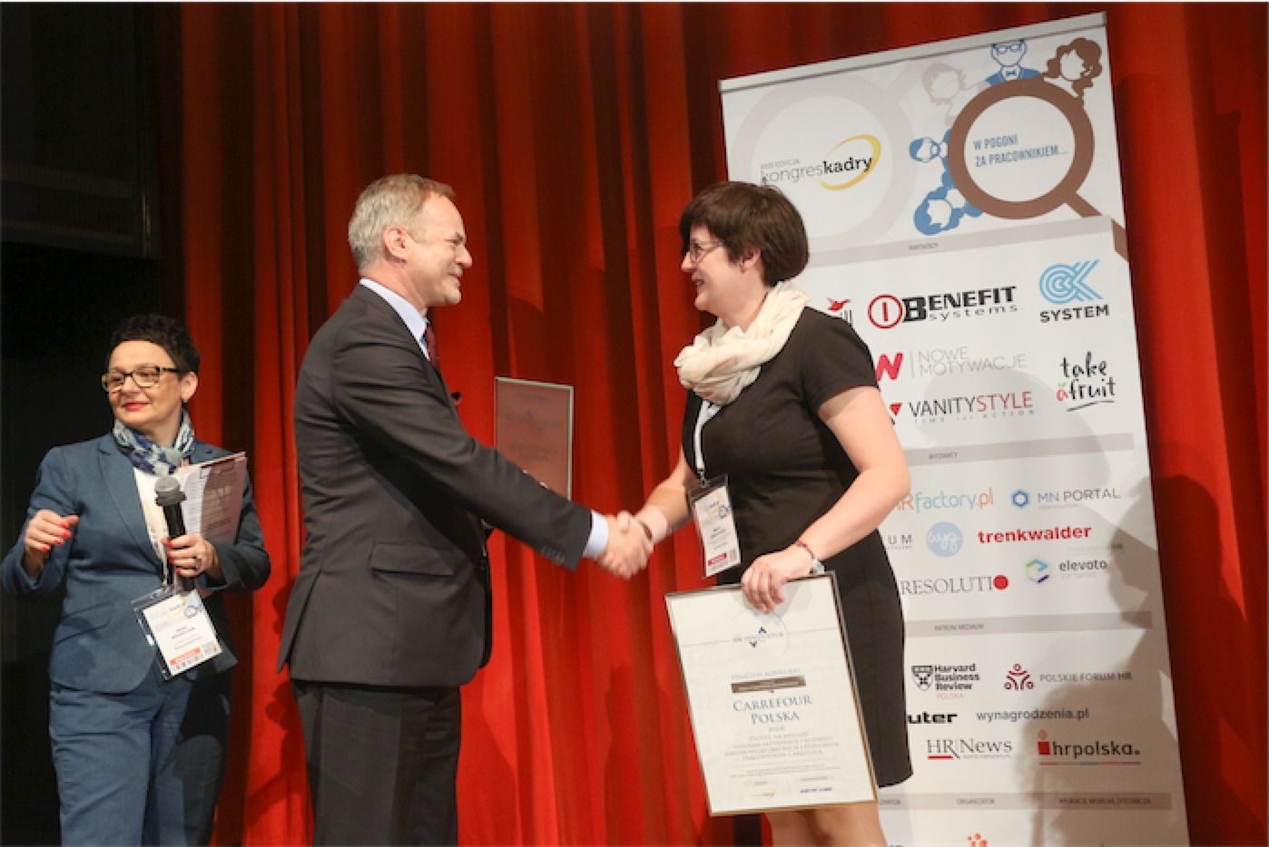 <p style="text-align: justify;">Firma Carrefour otrzymała prestiżową nagrodę 3. edycji konkursu HR Innovator za stworzenie projektu „Przepis na Mistrza”, którego celem jest aktywizacja i rozwój zawodowy obecnych i przyszłych pracowników. Przyznana nagroda to dowód uznania dla firmy Carrefour, która tworzy oraz realizuje innowacyjne projekty w zakresie zarządzania zasobami ludzkimi.</p>