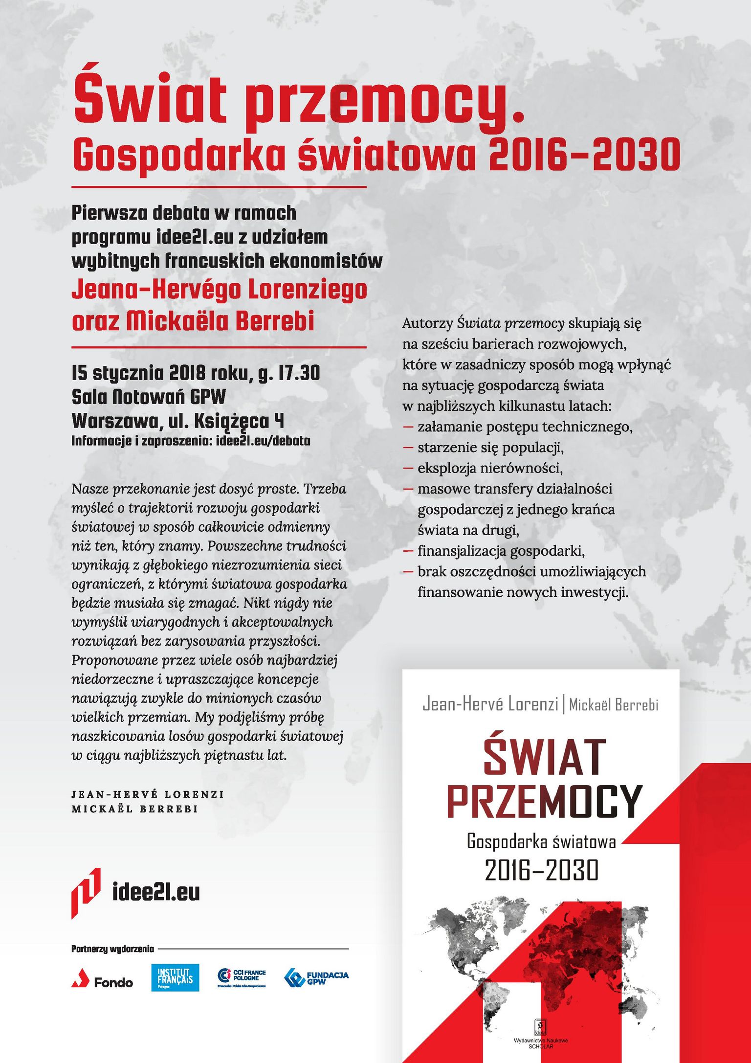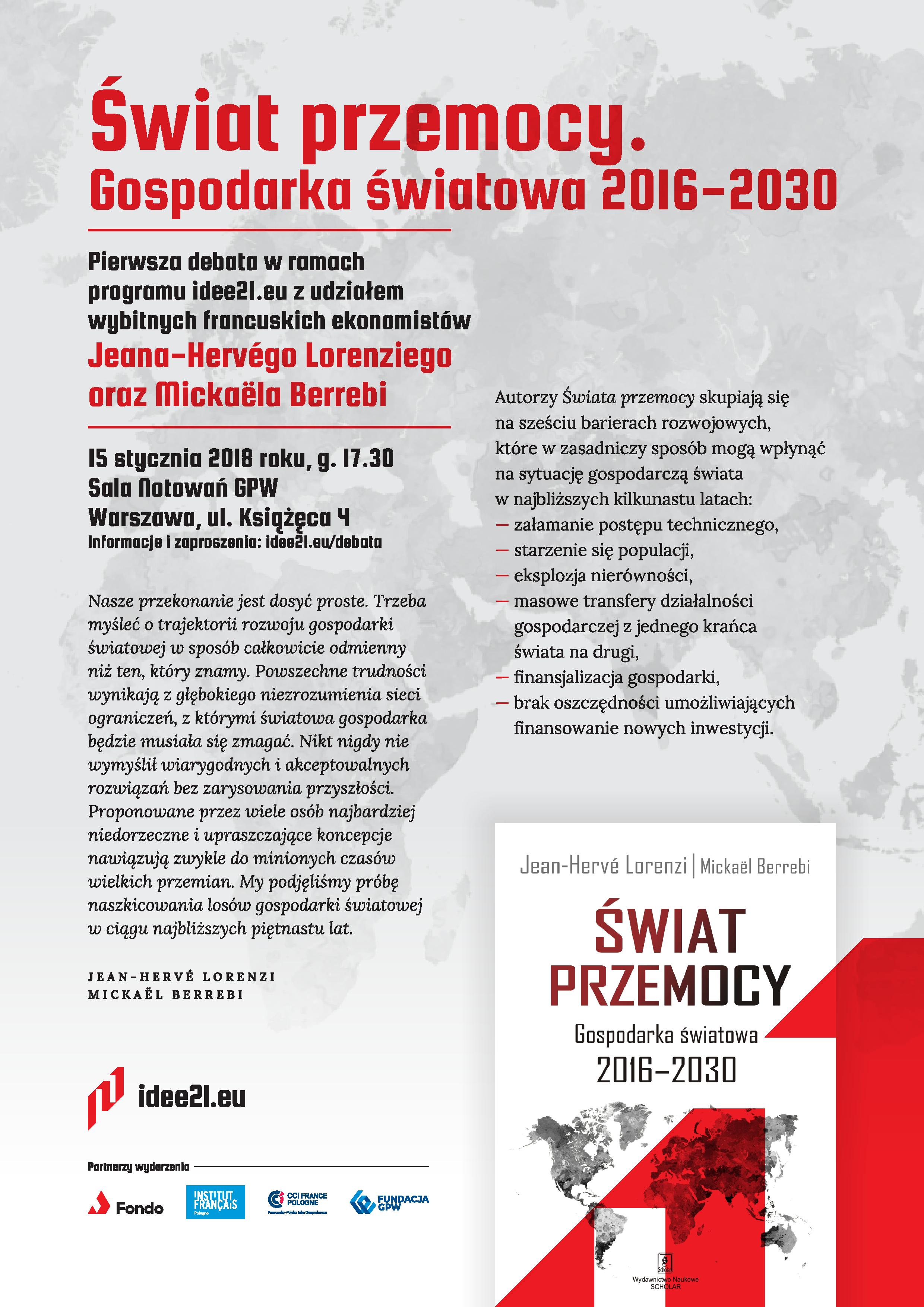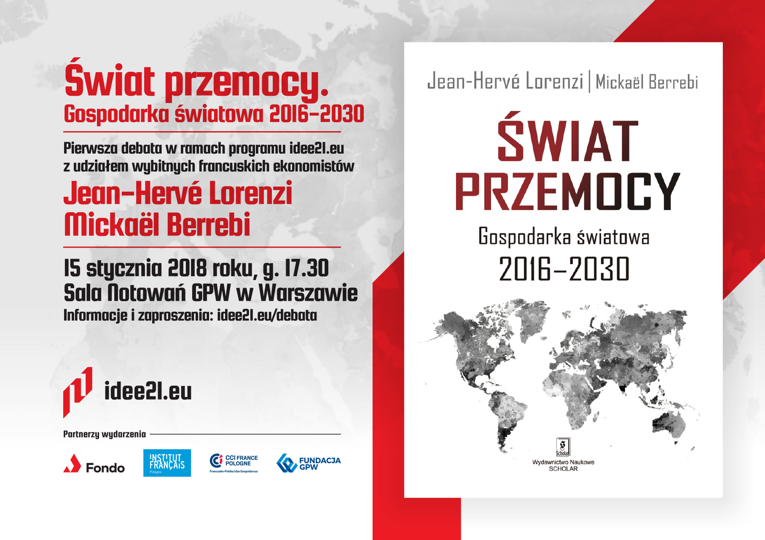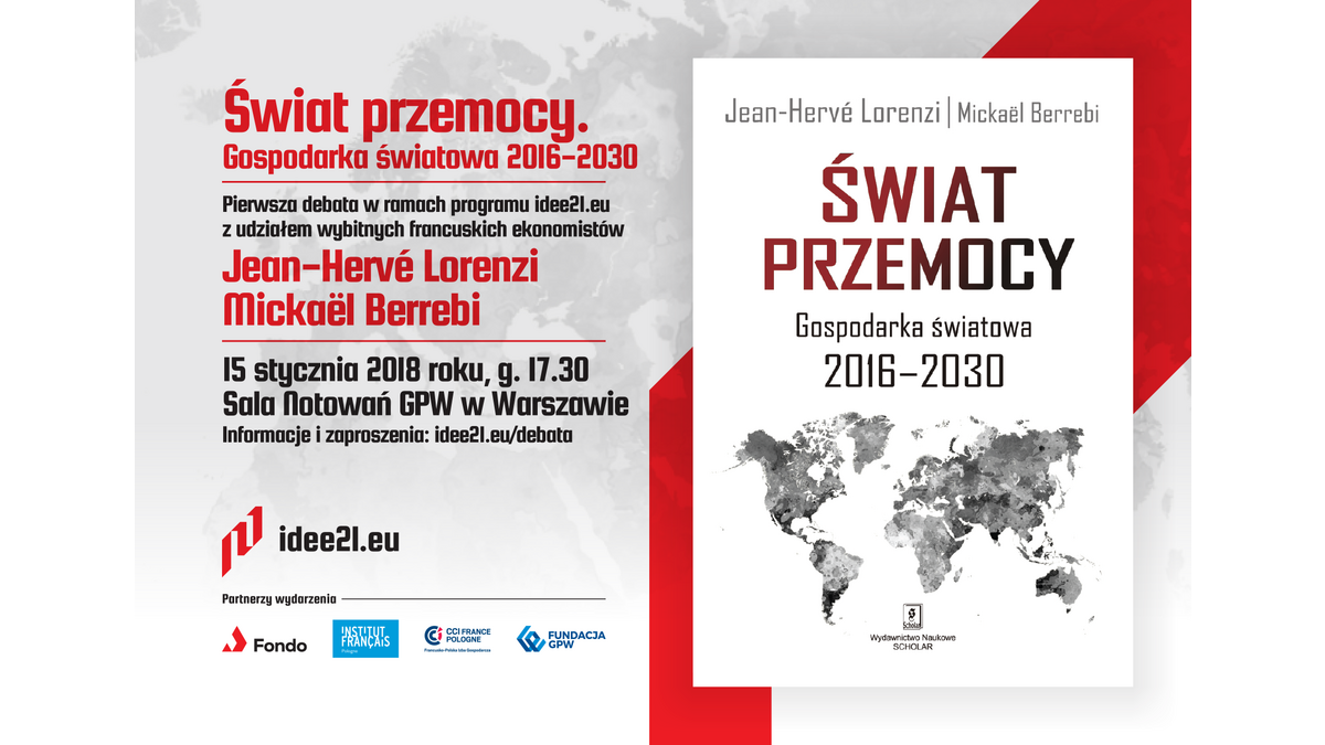 <p style="text-align: justify;">Pierwsza debata w ramach programu idee21.eu z udziałem wybitnych francuskich ekonomistów Jean-Hervé Lorenzi, Mickaël Berrebi. 15 stycznia 2018 roku, g. 17.30 Sala Notowań GPW w Warszawie. </p>