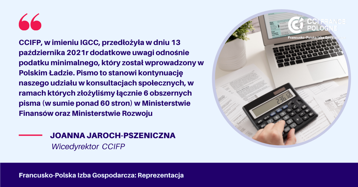 CCIFP, w imieniu IGCC, przedłożyła w dniu 13 października 2021r dodatkowe uwagi odnośnie podatku minimalnego, który został wprowadzony w Polskim Ładzie