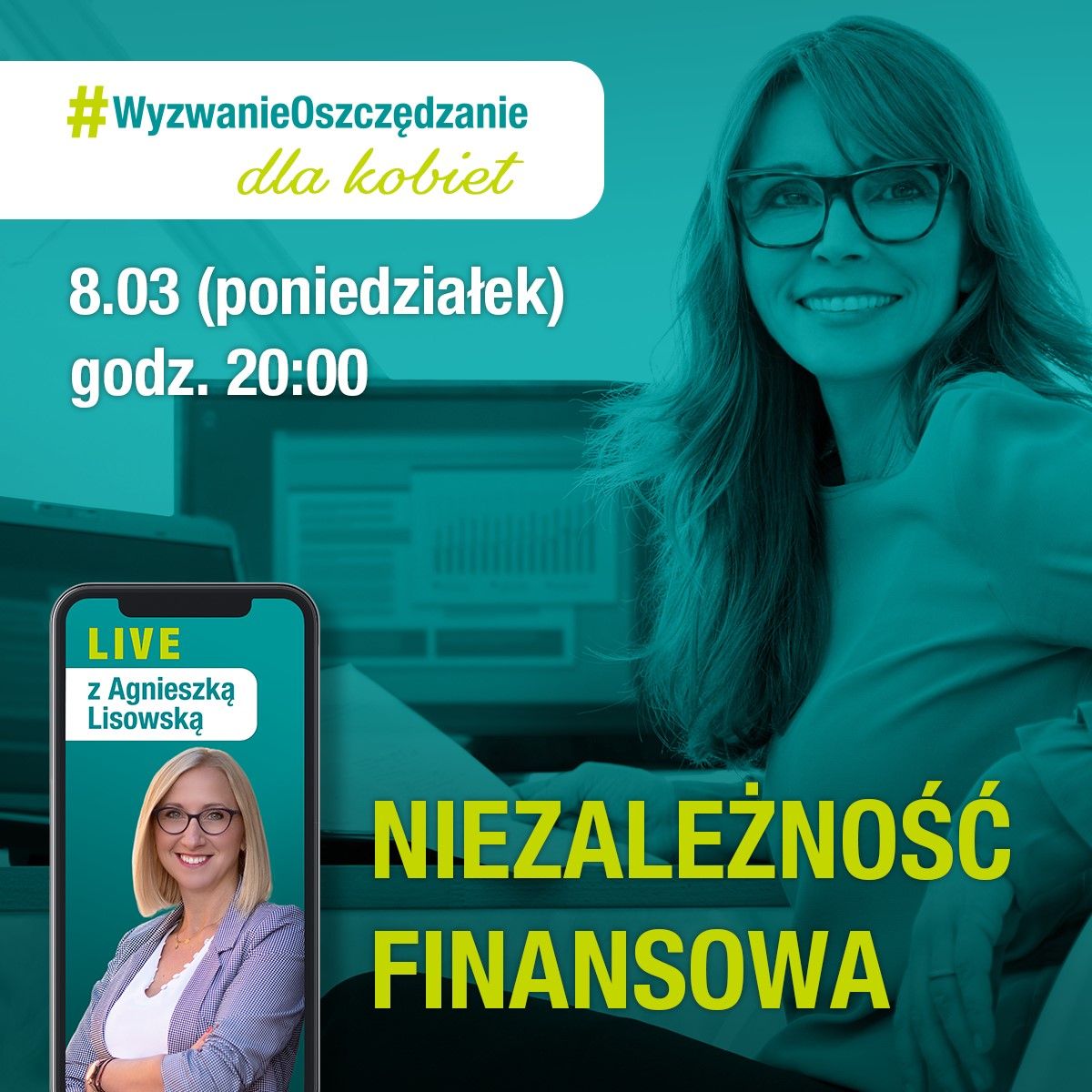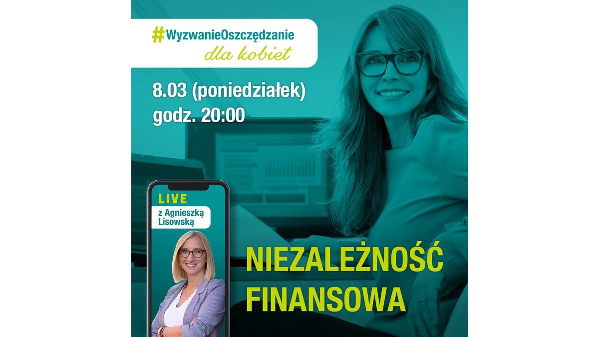 Jak w prosty sposób zadbać o niezależność finansową? Czym jest i jak zapewnić sobie wellbeing finansowy? Jak uchronić się przed niekontrolowanymi wydatkami? I jak rozwijać swoją przedsiębiorczość? - to niektóre pytania, na które odpowie Agnieszka Lisowska - Kobieta i Finanse podczas czterech spotkań live w ramach marcowego cyklu #wyzwanieoszczędzanie dla kobiet. Organizatorem akcji jest bank Credit Agricole.