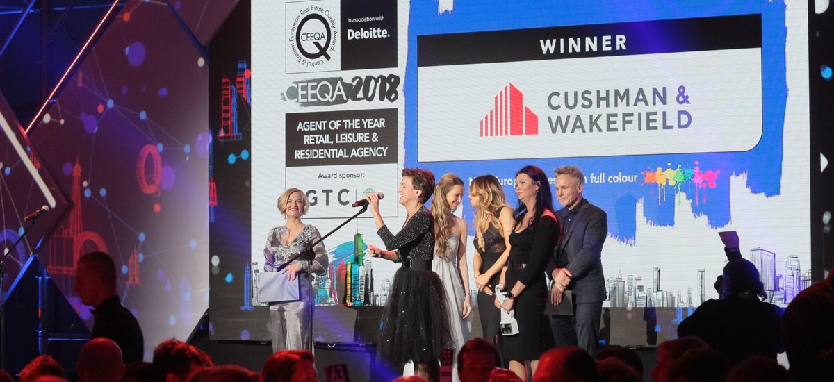 <p style="text-align: justify;">Międzynarodowa firma doradcza Cushman & Wakefield już trzeci rok z rzędu została Agentem Roku 2018 w Europie Środkowo-Wschodniej w kategorii powierzchni handlowo-rozrywkowych (CEE Retail & Leisure Agency Firm of the Year) w tegorocznym konkursie CEE Quality Awards. Uroczysta gala odbyła się 25 kwietnia 2018 roku w warszawskim kompleksie Mińska 65. Cushman & Wakefield pokonał 7 firm nominowanych do nagrody w tej kategorii: BSC Real Estate Advisors, CBRE, Coldwell Banker, Emmerson, JLL, Ober-Haus Svoboda & Williams.</p>