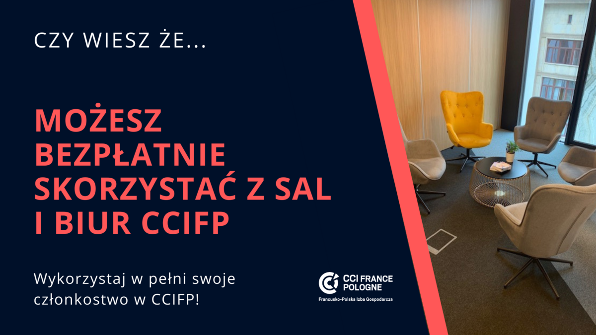 Wykorzystaj w pełni członkostwo w CCIFP i wynajmij bezpłatnie salę konferencyjną lub biuro w siedzibie Izby.