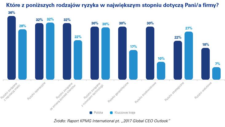 – W dobie globalizacji i szybkiego przepływu informacji niezależnie od miejsca, w którym się znajdujemy, rośnie znaczenie ryzyka reputacyjnego i zarz?dzania mark?. Firmy koncentruj?c się na bież?cej działalności i walcz?c o klienta powinny przykładać odpowiedni? wagę do zarz?dzania reputacj?, jakiekolwiek niedoci?gnięcia w tym zakresie mog? mieć bardzo poważne konsekwencje. W dalszej kolejności wśród rodzajów ryzyka maj?cego istotny wpływ na prowadzenie biznesu respondenci z Polski wymieniali ryzyko operacyjne i ryzyko zwi?zane ze zmian? preferencji klientów – mówi Leszek Wroński, partner, szef działu usług doradczych w KPMG w Polsce i Europie Środkowo-Wschodniej.
