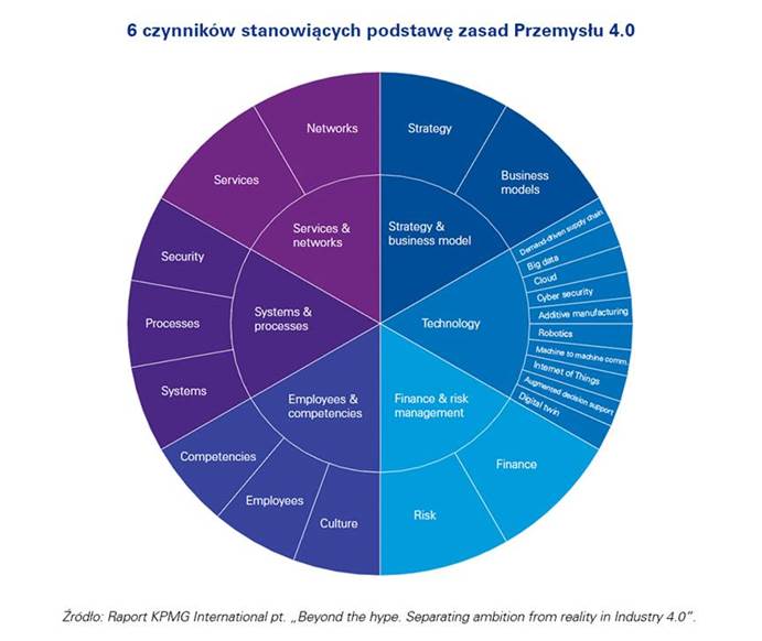 Raport KPMG International pt. „Beyond the hype. Separating ambition from reality in Industry 4.0” opisuje aktualny stan wdrożenia idei Przemysłu 4.0 na rynku. Opiera się na serii porównań pomiędzy wiod?cymi producentami przemysłowymi na całym świecie. Publikacja wskazuje także, w jaki sposób dzisiejsi liderzy rynku wykorzystuj? kompleksowe strategie Przemysłu 4.0, aby dokonać zmian w swoich modelach biznesowych, modelach operacyjnych i łańcuchach wartości.