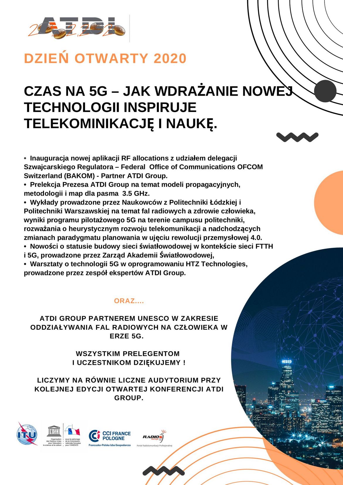 Temat przewodni: CZAS NA 5G – JAK WDRAŻANIE NOWEJ TECHNOLOGII INSPIRUJE TELEKOMUNIKACJĘ I NAUKĘ.