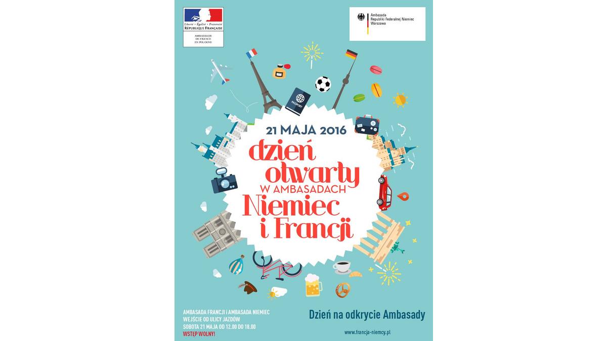 <p style="text-align: justify;">W sobotę 21 maja 2016 roku, już po raz drugi, Ambasada Francji i Ambasada Niemiec wspólnie zorganizują « Dzień otwarty ». Impreza będzie przygotowana w ramach tzw. dyplomacji publicznej na wzór poprzedniej edycji z września 2014 roku. Poprzednio, w godzinach od 12 do 18, obydwaj ambasadorowie przyjmowali gości w swoich placówkach. Przybyło ponad 6 tysięcy zwiedzających. W tym roku chcielibyśmy przyjąć jeszcze więcej osób, zapraszamy wszystkich Państwa gorąco.</p>