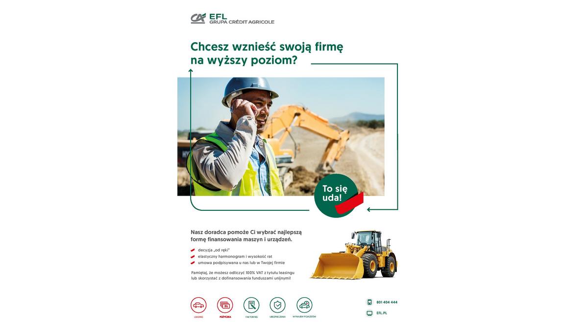 - W naszym „Barometrze EFL” od pocz?tku tego roku firmy budowlane wskazywały na prosperity w ich branży. W I kwartale aż 44 proc. przedsiębiorstw prognozowało wzrost sprzedaży swoich produktów i usług, w II kwartale ten wskaźnik był jeszcze wyższy i wyniósł 55%. Spogl?daj?c na półroczne wyniki sprzedaży leasingu maszyn i urz?dzeń budowlanych widzimy, że koresponduj? one z opiniami wyrażonymi przez samych przedsiębiorców. Taka sytuacja to odzwierciedlenie bardzo dobrej sytuacji na rynku inwestycji mieszkaniowych, prac infrastrukturalnych jak i utrzymuj?cych się optymistycznych nastrojów konsumenckich – mówi Radosław Kuczyński, prezes EFL.