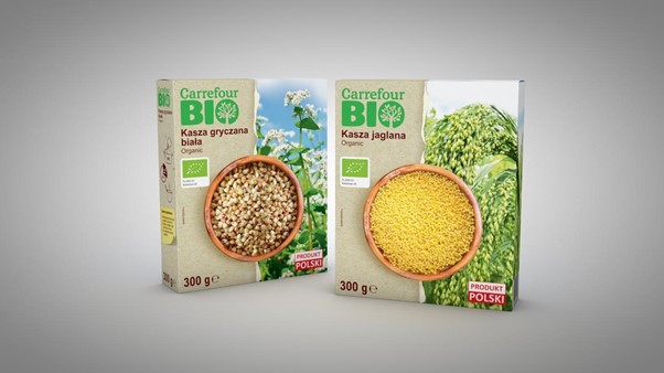 Agencja Altavia od lat przygotowuje projekty opakowań dla marek własnych sieci Carrefour, w tym także dla całej gamy produktów ekologicznych. Dzięki temu mam szczęście śledzić ten trend od długiego już czasu. W przypadku tak dużej międzynarodowej sieci handlowej promocja i identyfikacja wizualna, a co za tym idzie pozytywne postrzeganie produktów jest bardzo ważnym elementem strategii sprzedaży. Pracując nad stroną wizualną opakowań produktów ekologicznych marki własnej, istotna jest ich spójność i łatwa rozpoznawalność na półkach. Bo marka własna to szeroki wachlarz różnych produktów z wielu kategorii.