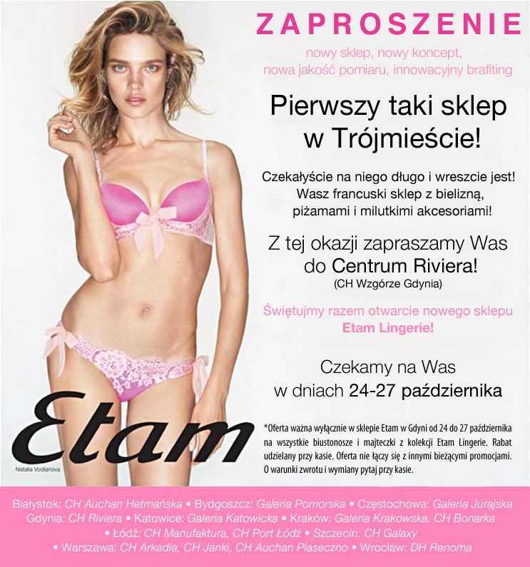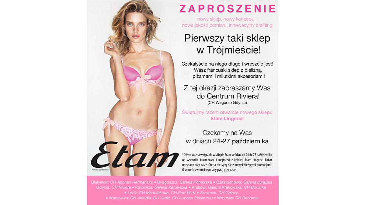 <p style="text-align: justify;">Etam świętuje otwarcie nowego sklepu w Trójmieście. Zapraszamy w dniach 24-27 października do Centrum Riviera (CH Wzgórze Gdynia)</p>