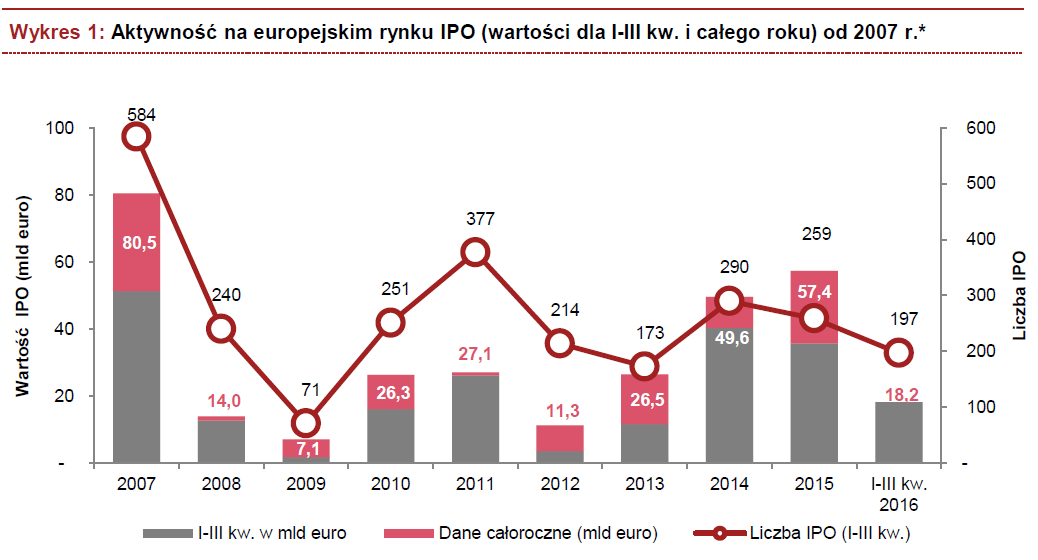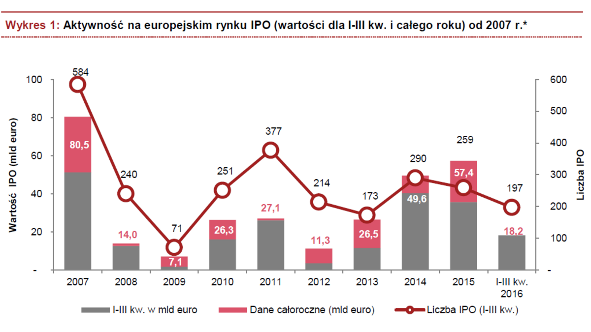 Europejski i polski rynek ofert pierwotnych w III kwartale 2016 r.