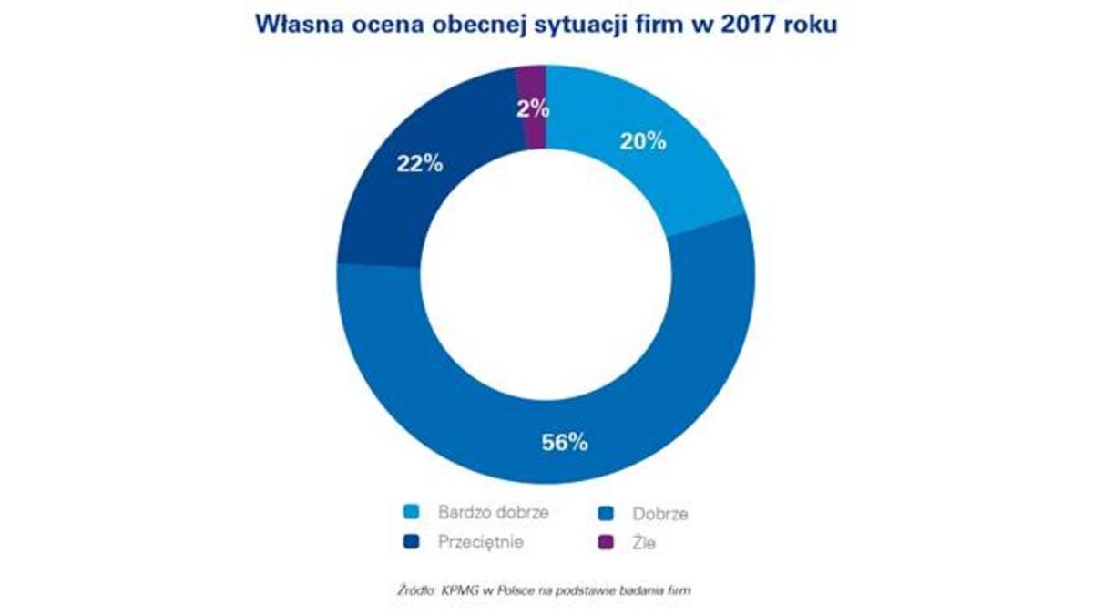 Jak wynika z badania KPMG aż 76% przedsiębiorstw produkcyjnych w Polsce ocenia swoj? sytuację jako dobr? lub bardzo dobr?. Jedynie 2% respondentów uznało kondycję firmy jako zł?. Blisko 60% przedsiębiorstw produkcyjnych w swojej strategii na najbliższy rok zakłada wzrost.