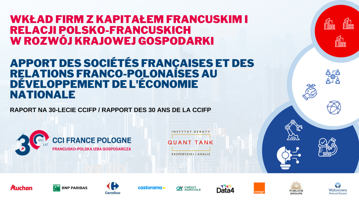 Francusko-Polska Izba Gospodarcza (CCIFP) we współpracy z Instytutem Debaty Eksperckiej i Analiz QUANT TANK z okazji 30-lecia istnienia Izby wydała raport pt. „Wkład firm z kapitałem francuskim i relacji polsko-francuskich w polską gospodarkę”, który stanowi obszerną analizę relacji biznesowych między Polską a Francją.