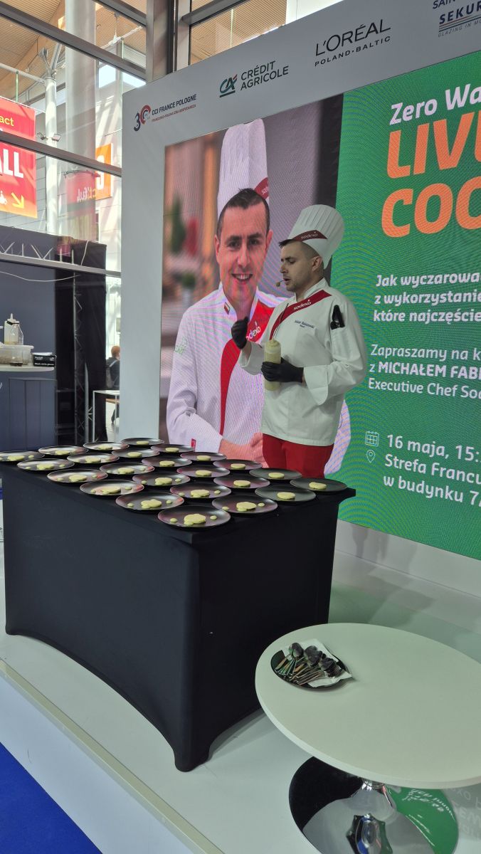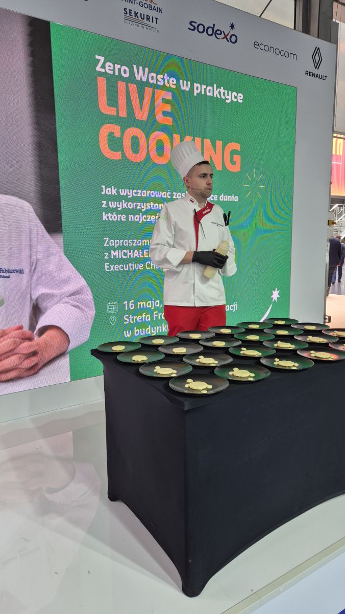 Całość zwieńczył pokaz live cooking zero waste w wykonaniu Michała Fabiszewskiego, szefa kuchni Sodexo Polska. Z kilku składników, które często marnują się w kuchni przygotował wyborną panna cottę z pianką z coli, lodami popcornowymi i pudrem cynamonowym.