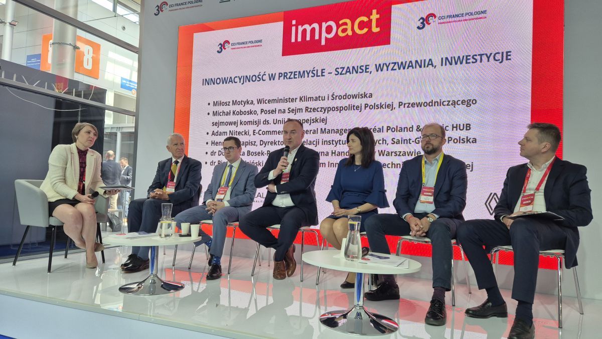 Debatę moderowała Joanna Jaroch-Pszeniczna, Dyrektorka Generalna Francusko-Polskiej Izby Gospodarczej. W trakcie dyskusji minister Motyka podkreślił, że zielona transformacja nie może udać się bez biznesu, a podstawą naszego miksu energetycznego powinny być odnawialne źródła energii oraz atom. Zaznaczył przy tym, że Zielony Ład już funkcjonuje i musimy nauczyć się z niego korzystać, by zapewnić Polsce sprawiedliwą i bezpieczną transformację. O roli zielonego ładu mówił również Michał Kobosko, podkreślając, że aby zachować konkurencyjność w polskiej gospodarce musimy pamiętać o lokalnym kontekście. Innowacyjność, czy ESG, są bardzo ważne, ale ważne są również aktualne warunki funkcjonowania naszych społeczeństw. Henryk Kwapisz podkreślił, że zielony ład to szansa dla Europy, ale powinien on wspierać rozwój innowacji. Biznes, w tym Saint-Gobain, robi wszystko, by być jak najbardziej zielonym. Jedna rzecz to działania na rzecz czystej energii, a druga to edukacja społeczeństwa.