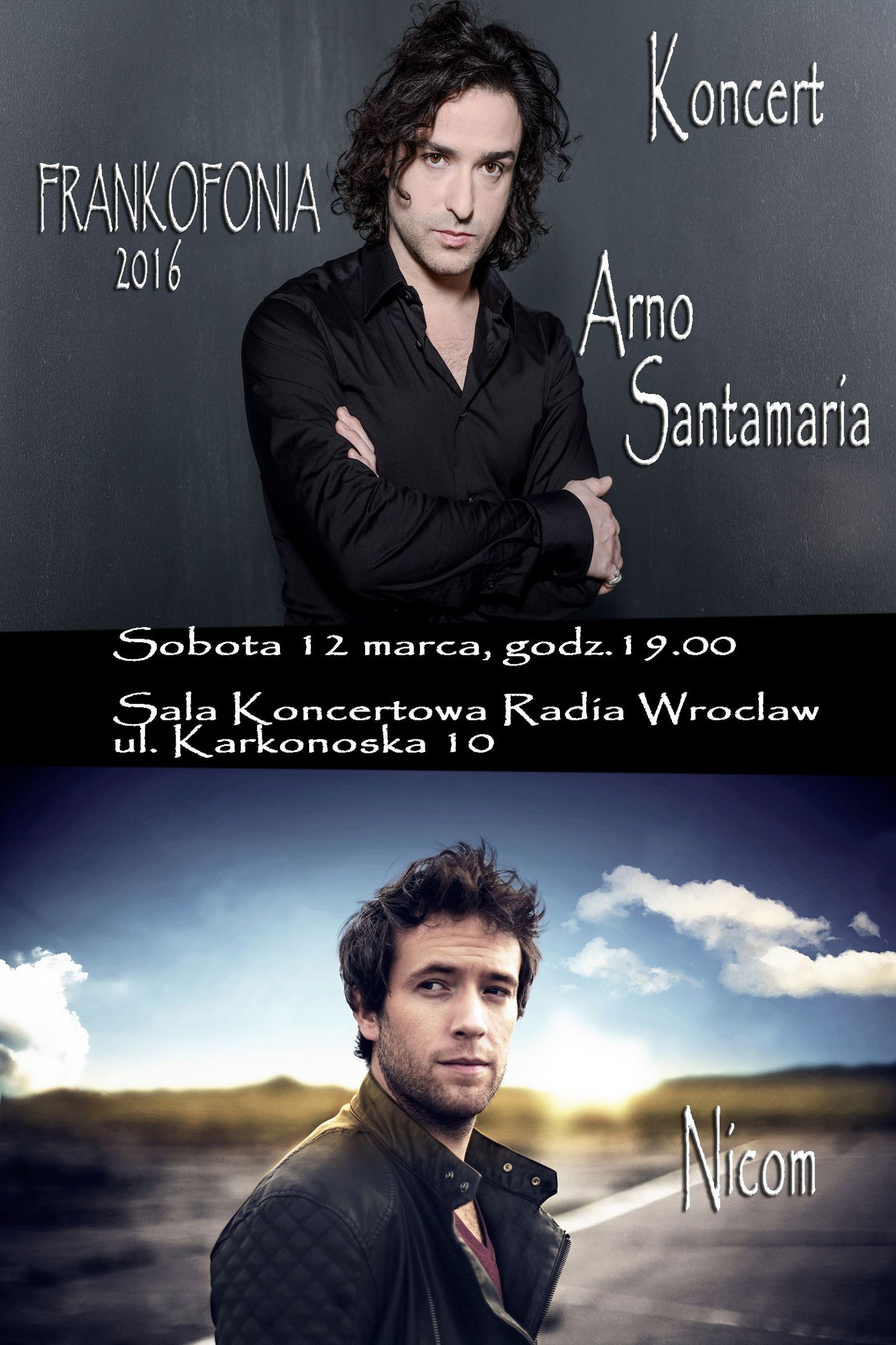 12 marca, w sali koncertowej Radia Wrocław, przewidziany jest koncert muzyki pop, co pozwoli nam na odkrycie dwóch młodych artystów francuskich, Arno Santamaria i Nicom.