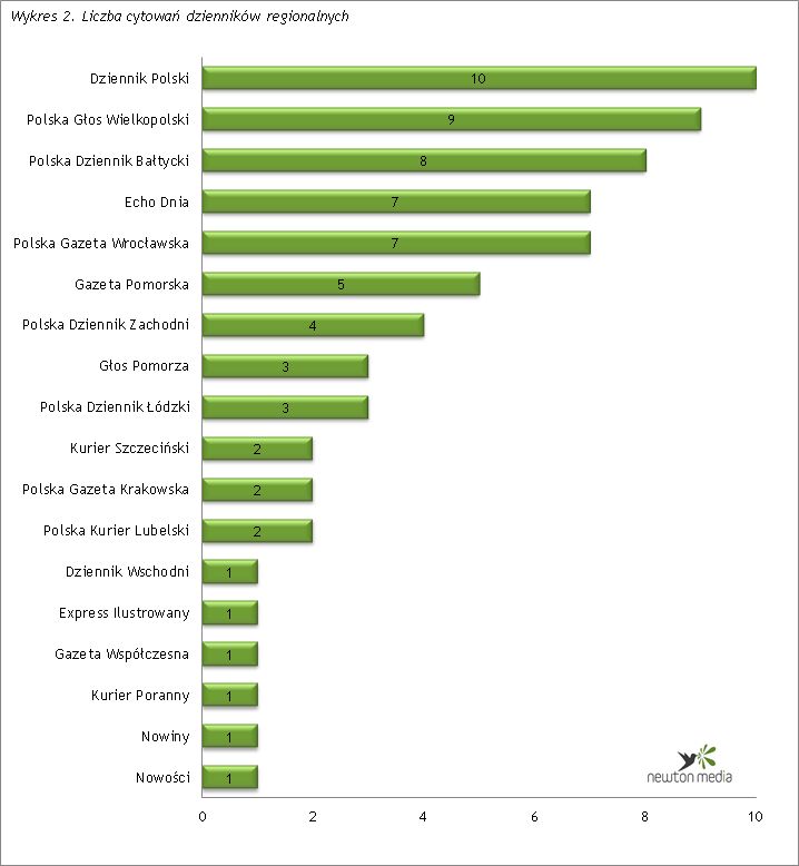 Wśród dzienników regionalnych na pierwszym miejscu znalazł się Polska Głos Wielkopolski (11). Drugie miejsce zajęła Polska Gazeta Wrocławska (10), a trzecie Polska Dziennik Łódzki (7).