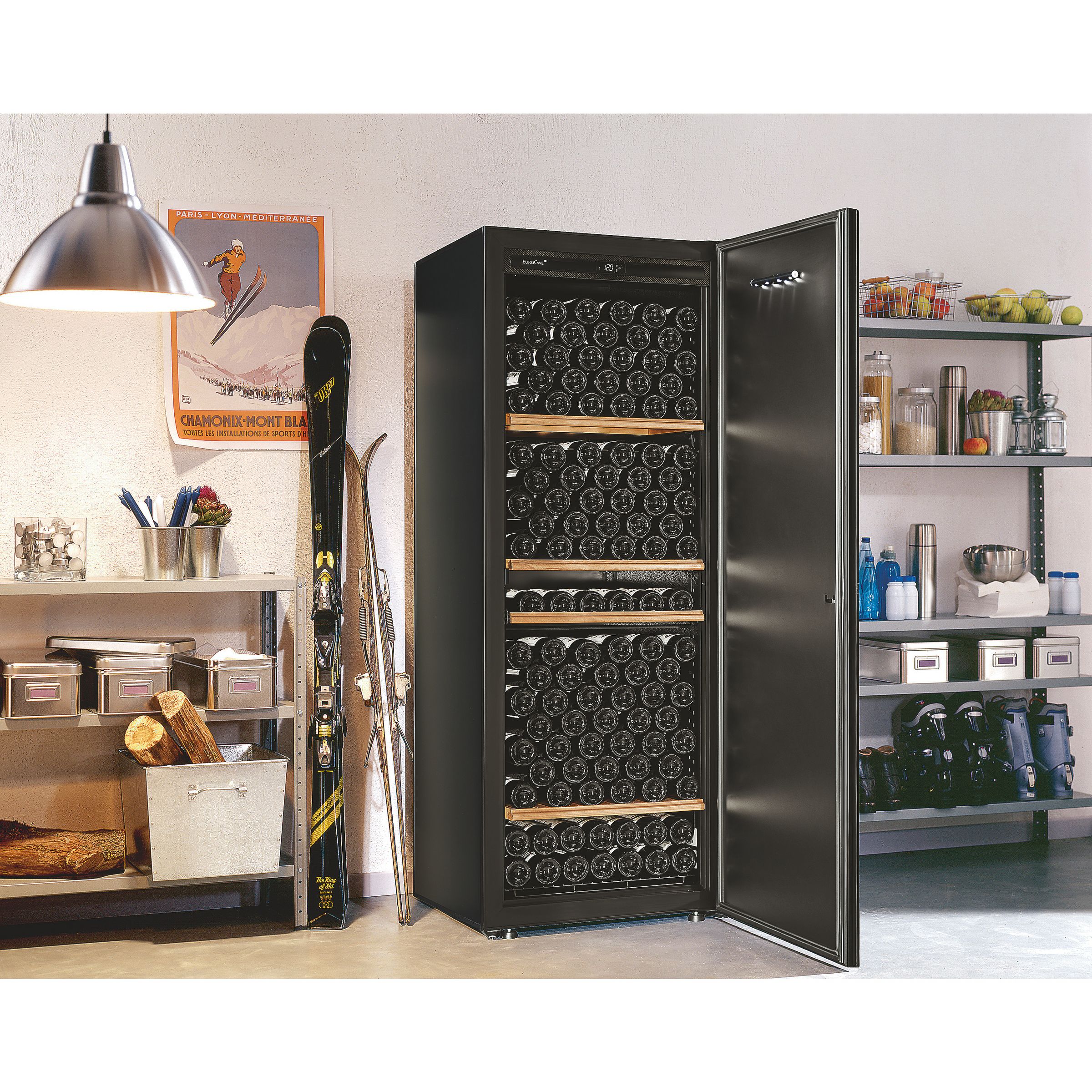 Nowoczesne szafy oferuj? pojemność w okolicach 250 butelek, stanowi?c doskonała alternatywę dla tradycyjnej piwniczki. Należy się przy tym upewnić czy szklane drzwi takiej szafy wyposażone s? w filtr promieniowania ultrafioletowego a wino leżakuje na łatwych do wysunięcia półkach.