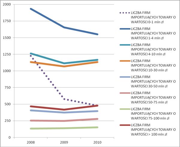 Rys. Rys. 1 Dynamika ilości przedsiębiorstw importujących w okresie 2008 – 2010.