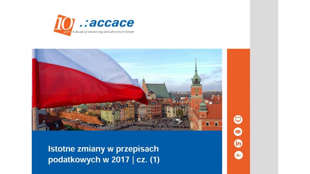 <p style="text-align: justify;">Firma Accace opublikowała pierwszą część przewodnika przedstawiającego zmiany podatkowe, które czekają przedsiębiorców w 2017 roku. Zapraszamy do pobrania publikacji ze strony: <a href="http://accace.pl/newsroom/lokalne-nowosci/114912/105035/tax-alert-zmiany-w-podatkach-w-2017-roku" target="_blank">http://accace.pl/newsroom/lokalne-nowosci/114912/105035/tax-alert-zmiany-w-podatkach-w-2017-roku</a></p>
