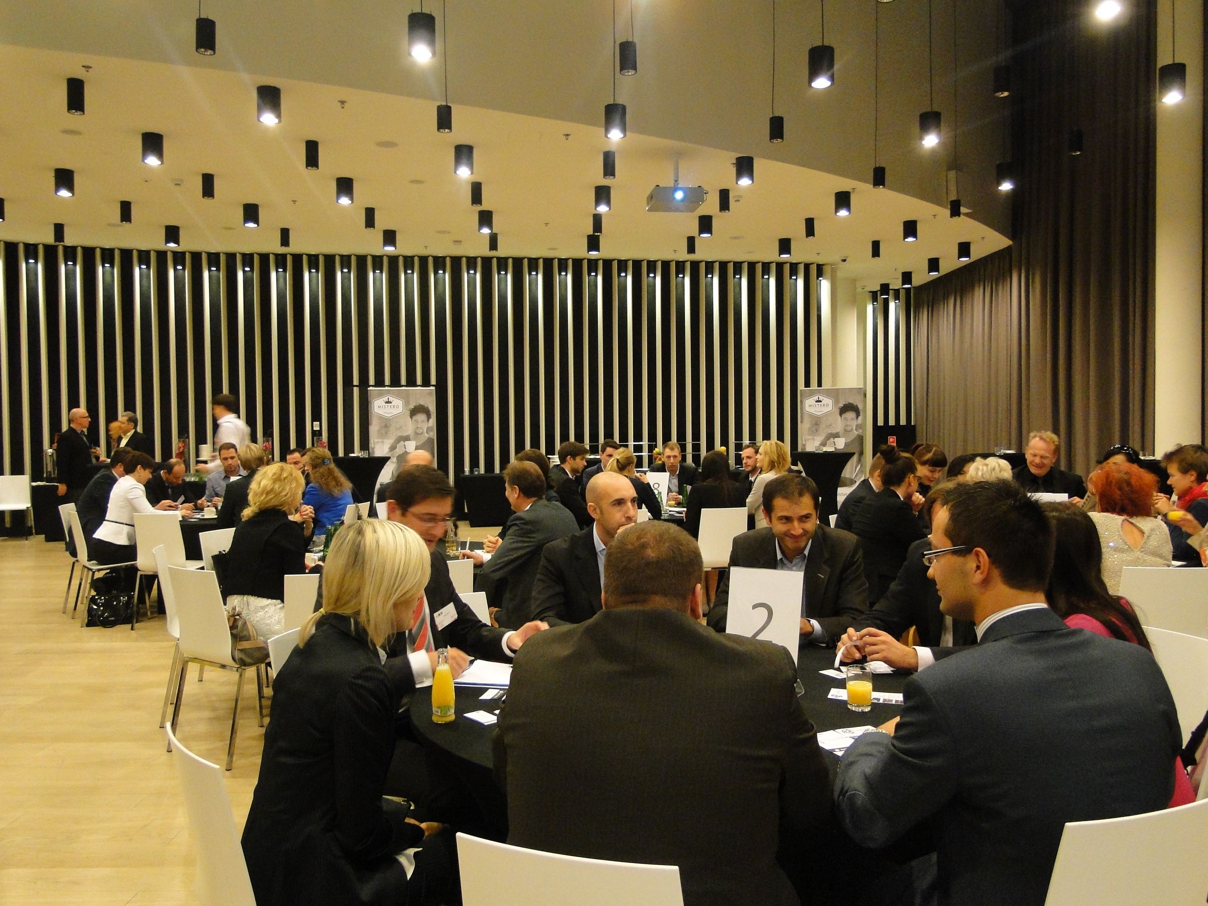 Podczas Speed Business Meetingu każda firma miała okazję zdobyć około 30 nowych kontaktów biznesowych. Koktajl, który odbył się po 3 sesjach grupowych spotkań okazał się wspaniał? okazj? na nawi?zanie relacji biznesowych z pozostałymi uczestnikami wieczoru przy lampce wina oraz w miłej atmosferze.
