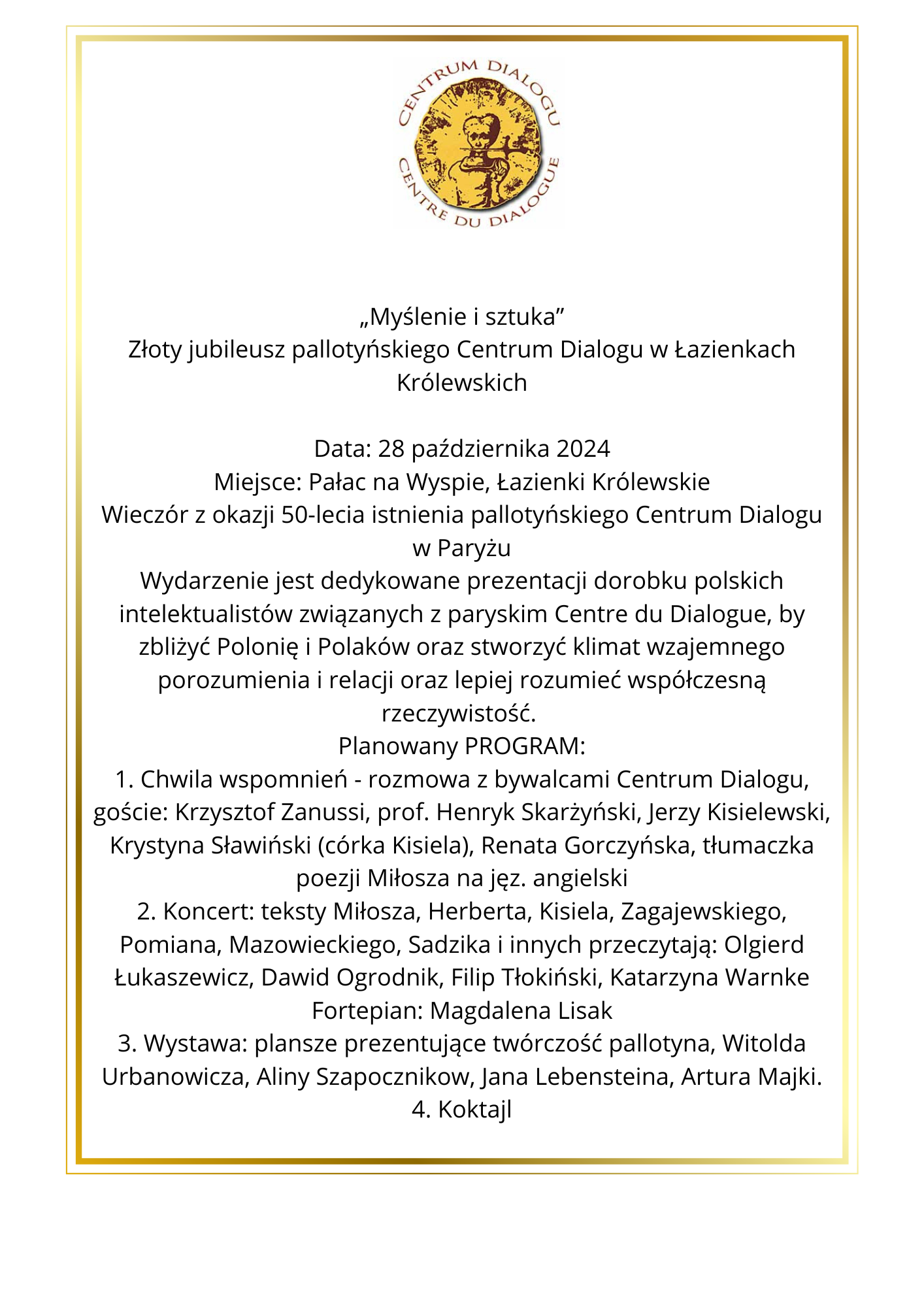 Jubileuszowy koncert z okazji 50-lecia paryskiego Centre du Dialogue - propozycja współpracy