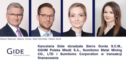 Prawnicy z warszawskiego oraz londyńskiego biura kancelarii Gide doradzali Sierra Gorda S.C.M., KGHM Polska Miedź S.A., Sumitomo Metal Mining CO., LTD i Sumitomo Corporation przy przeprowadzeniu transakcji finansowania na kwotę 700 milionów dolarów, którego udzielił Bank Gospodarstwa Krajowego.