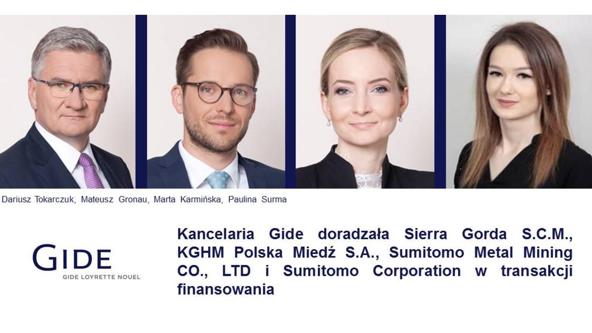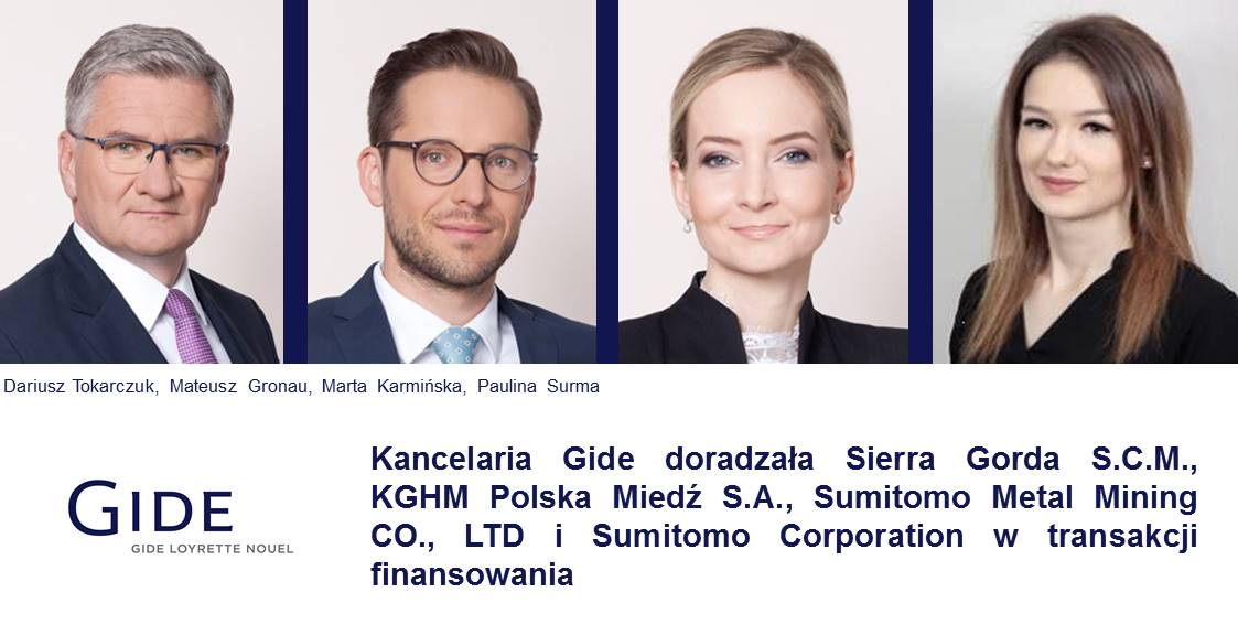 Prawnicy z warszawskiego oraz londyńskiego biura kancelarii Gide doradzali Sierra Gorda S.C.M., KGHM Polska Miedź S.A., Sumitomo Metal Mining CO., LTD i Sumitomo Corporation przy przeprowadzeniu transakcji finansowania na kwotę 700 milionów dolarów, którego udzielił Bank Gospodarstwa Krajowego.