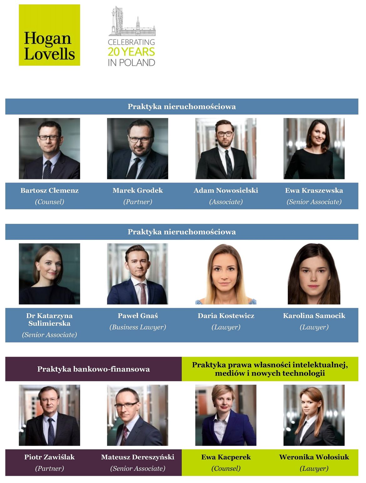 W skład zespołu transakcyjnego Hogan Lovells, w zakresie kwestii nieruchomościowych, wchodzili: Adam Nowosielski, Ewa Kraszewska, dr Katarzyna Sulimierska, Paweł Gnaś, Daria Kostewicz oraz Karolina Samocik.