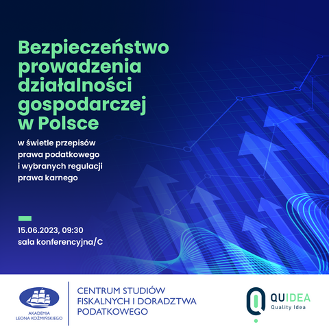 w imieniu Centrum Studiów Fiskalnych i Doradztwa Podatkowego Akademii Leona Koźmińskiego w Warszawie oraz firmy doradczej QUIDEA mamy zaszczyt zaprosić Państwa na konferencję naukową pt. „Bezpieczeństwo prowadzenia działalności gospodarczej w Polsce w świetle przepisów prawa podatkowego i wybranych regulacji prawa karnego”, która odbędzie się 15 czerwca 2023 roku w systemie hybrydowym:
