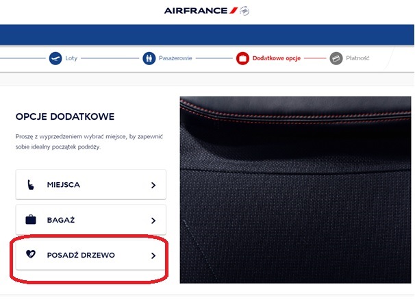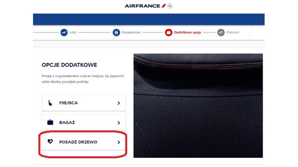 Aby wesprzeć sadzenie drzew, można przekazać darowiznę przy zakupie biletu. Dokonuj?c rezerwacji na airfrance.pl, po wyborze trasy, godzin lotu i oferty cenowej, należy klikn?ć „posadź drzewo”, a następnie wpisać kwotę, któr? chcemy podarować. O t? kwotę zostanie powiększona nasza całkowita należność za bilet, a Air France przekaże nasz datek jednej z organizacji zajmuj?cej się zalesianiem.