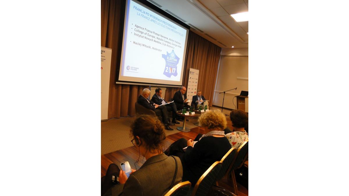 Pierwsze pytania dotyczyły oceny przebiegu kampanii prezydenckiej. Eryk Mistewicz, prezes Instytutu Nowych Mediów, zwrócił uwagę, na niewielkie wykorzystanie mediów społecznościowych i powrót do tradycyjnych form przekazu, jak prasa, radio i telewizja. Podkreślał przy tym, że kandydatem najczęściej pojawiaj?cym się w mediach był Macron. Szef warszawskiego biura AFP, Michel Viatteau mówił, że spor? rolę w wyborach odegrał przypadek. Gdyby nie porażka Juppé w prawyborach, czy skandale w obozie Fillona, wynik wyborów mógłby być zupełnie inny.