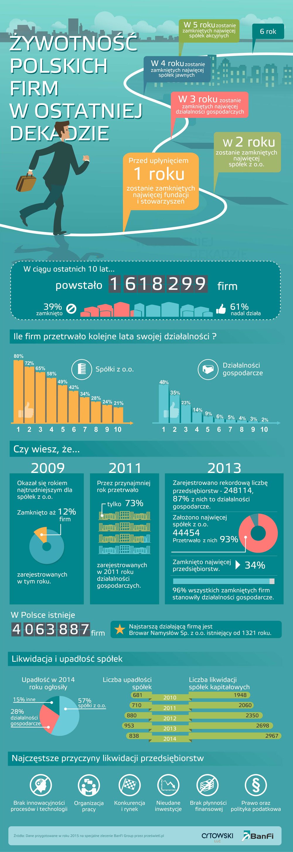 Szczegółowe dane dotycz?ce żywotności polskich firm w minionej dekadzie oraz likwidacji przedsiębiorstw znajduj? się w zał?czonych infografikach.