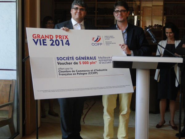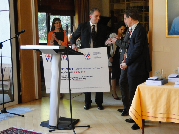 W kategorii najlepszy pracodawca VIE wśród dużych firm statuetkę i voucher na 5000 pln ufundowany przez Francusk? Izbę Przemysłowo-Handlow? w Polsce (CCIFP) otrzymała firma Société Générale, natomiast wśród małych i średnich przedsiębiorstw, takim samym wyróżnieniem została uhonorowana firma ARTIMBER. Firmy te zostały docenione za to, że w okresie od stycznia 2012 do kwietnia 2014 r. zatrudniły największ? liczbę młodych stażystów V.I.E.