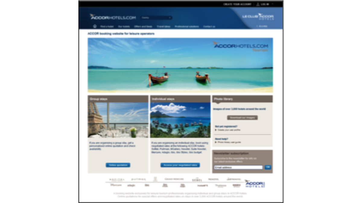 Accor oferuje swoim partnerom z branży turystycznej nowe narzędzie, które pozwoli im dokonać rezerwacji bezpośrednio dla grup od 15 do 60 osób (8 do 30 pokoi). Serwis jest bardzo przyjazny dla użytkownika i zaprojektowany jak system rezerwacji, pozwalaj?cy m.in. na: