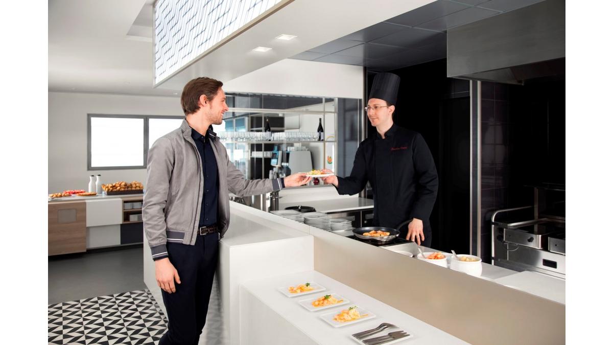 W najnowszym salonie biznesowym zadbano o wysokiej jakości ofertę kulinarn?, która jest zróżnicowana i uwzględnia wymagania największych smakoszy. Wyj?tkowa restauracja "Gourmet Table", która została zaprojektowana w stylu nowoczesnej paryskiej „brasserie”, oferuje otwart? kuchnię. To tutaj możemy być świadkami profesjonalnych pokazów kulinarnych, podczas których szef kuchni przygotowuje swoje kreacje na oczach gości.
