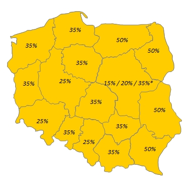 Przede wszystkim, w zakresie wsparcia na nowe inwestycje przedsiębiorstw (tzw. pomoc regionalna), nast?pi znacz?ce pogorszenie warunków uzyskiwania wsparcia w porównaniu do okresu 2007-2013. Podstawowa zmiana to obniżenie (wyrażonych procentowo) maksymalnych pułapów dofinansowania, co wynika z faktu, iż polskie regiony rozwinęły się w stosunku do średniej unijnej na tyle, iż wsparcie im przyznawane powinno być niższe. W efekcie, jedynie 4 województwa Polski wschodniej utrzymały najwyższy (50%) limit pomocy – w pozostałych regionach maksymalne wsparcie spadło do 35 a nawet 25% (z poziomu 50 lub 40%). W specyficznej sytuacji znajduje się woj. mazowieckie – w poprzedniej perspektywie uprawnione do 30% limitu – w nowym rozdaniu limit ten wyniesie 35%, z wyj?tkiem podregionu zachodniego (20%) i m.st. Warszawa (do końca 2017 – 15%, następnie jedynie 10%)*. Specyficzna sytuacja woj. mazowieckiego wyraża się również w tym, iż duże firmy, które planuj? rozbudowę swych zakładów zlokalizowanych w tym regionie będ? mogły uzyskać dofinansowanie jedynie na dywersyfikację w kierunku nowych branż.