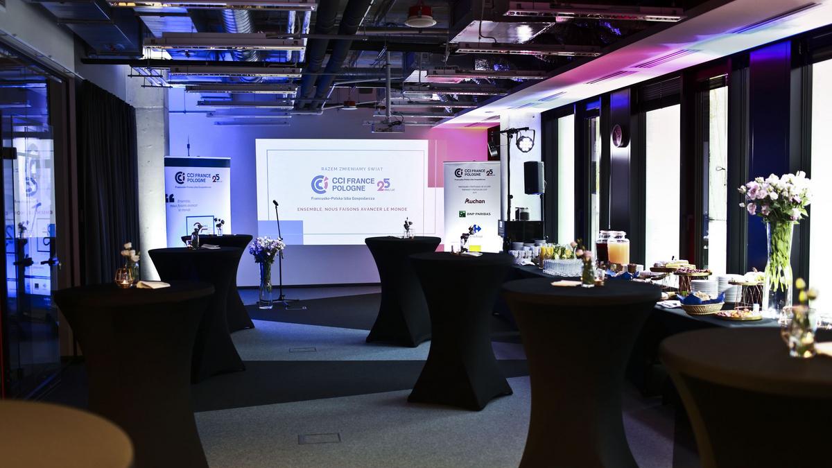 Goście mieli okazję zobaczyć nowocześnie urządzone sale, które specjalnie na ten wieczór zyskały nową oprawę wizualną. Spotkanie otworzył Prezes CCIFP, Pan Jean François Fallacher, który przypomniał o jubileuszu Izby, a także opowiedział o jej usługach. Nowa przestrzeń będzie bowiem dostępna również dla firm stowarzyszonych, które mogą organizować własne seminaria, spotkania, czy eventy w jednej z trzech sal, które można w razie potrzeby połączyć w jedną, dużą przestrzeń konferencyjną. Prezes mówił również o otwarciu nowego inkubatora biznesu Le Booster, który oferuje usługi wynajmu biur, wyszukiwania partnerów na rynkach zagranicznych, organizuje misje handlowe, wspiera w rekrutacji i prowadzeniu spraw kadrowych, jak również odzyskuje VAT dla firm. Przypomniał przy tym o nowej stronie internetowej, a także zachęcił do śledzenia aktywności CCIFP w mediach społecznościowych. Po nim głos zabrał Ambasador Francji w Polsce, Pan Pierre Levy, który z końcem września kończy swoją misję w Polsce. Dziękował on za zaangażowanie CCIFP w rozwój polsko-francuskich relacji i życzył sukcesów w nowej siedzibie. Na koniec głos zabrał Eric Dapoigny, Prezes firmy Yareal, która była partnerem wieczoru.