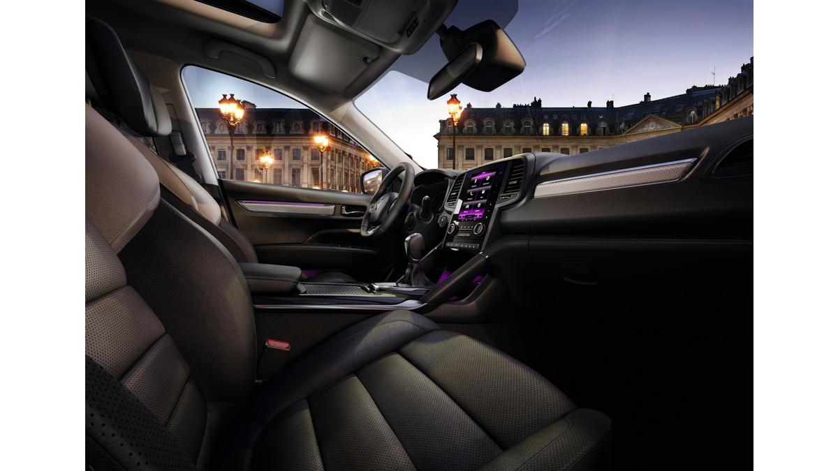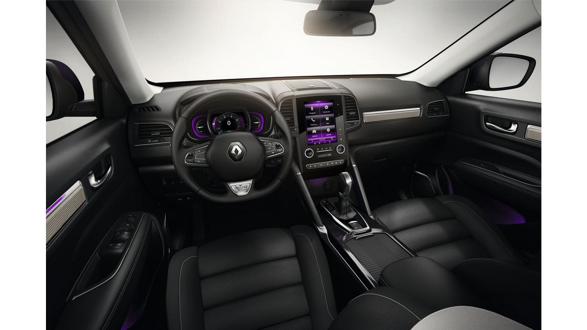 Jest on wyposażony w system multimedialny R-LINK 2 z 7-calowym ekranem dotykowym, map? Europy, funkcj? Bluetooth, radiem cyfrowym. Wersja INTENS Nowego Renault KOLEOS posiada 18-calowe obręcze kół ze stopu metali lekkich, światła LED Pure Vision, oświetlenie ambientowe, a wśród wyposażenia opcjonalnego wybrać można tapicerkę skórzan? w jednym z trzech kolorów: grafitowym, platynowo-szarym lub br?zowym. Jest wyposażona w kamerę cofania, system R-LINK 2, ekran dotykowy 8,7'' oraz dostęp do usług online.