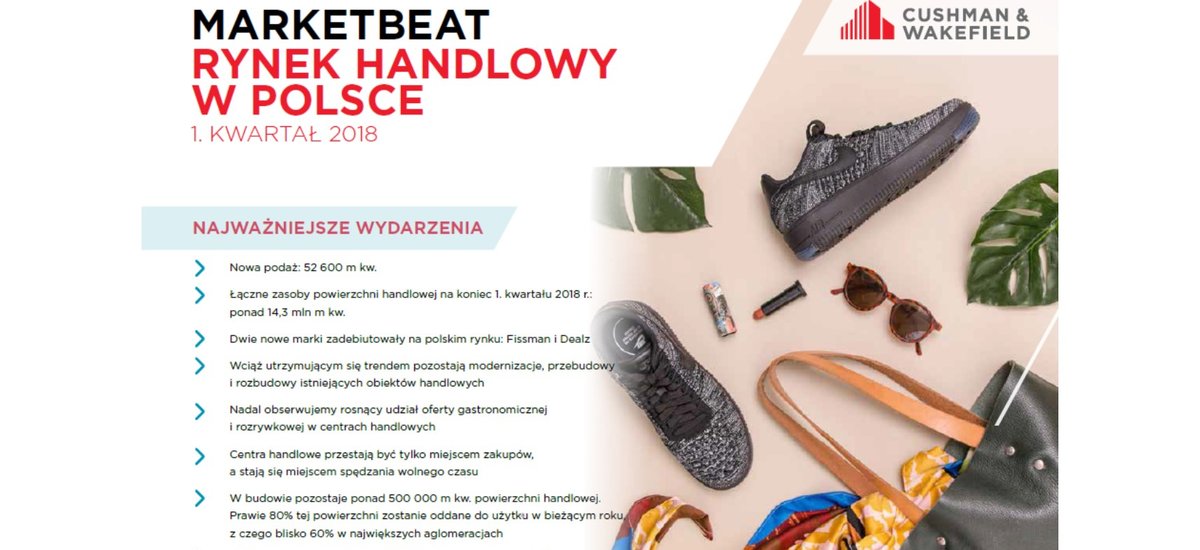 <p style="text-align: justify;">Międzynarodowa firma doradcza Cushman & Wakefield podsumowuje pierwszy kwartał na rynku nowoczesnych powierzchni handlowych w Polsce w raporcie MARKETBEAT: Rynek powierzchni handlowych w Polsce.</p>