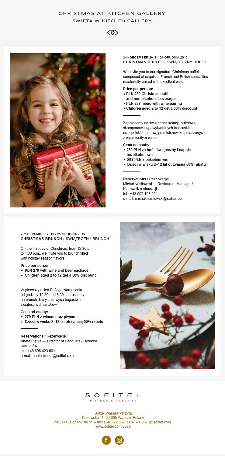 Serdecznie zapraszamy do skorzystania z oferty świąteczno – noworocznej Hotelu Sofitel Warsaw Victoria.