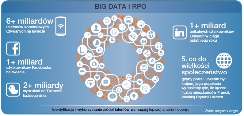 Najlepsi pracodawcy wiedz?, jak korzystać z ogromnych zasobów danych cyfrowych (np. z portali społecznościowych czy urz?dzeń mobilnych) i zbierać informacje, aby zidentyfikować, przyci?gn?ć, zatrudnić i zatrzymać talenty. Odpowiedni dostawca RPO musi dysponować możliwości? wykorzystania Big Data na wszystkich etapach procesów rekrutacyjnych.