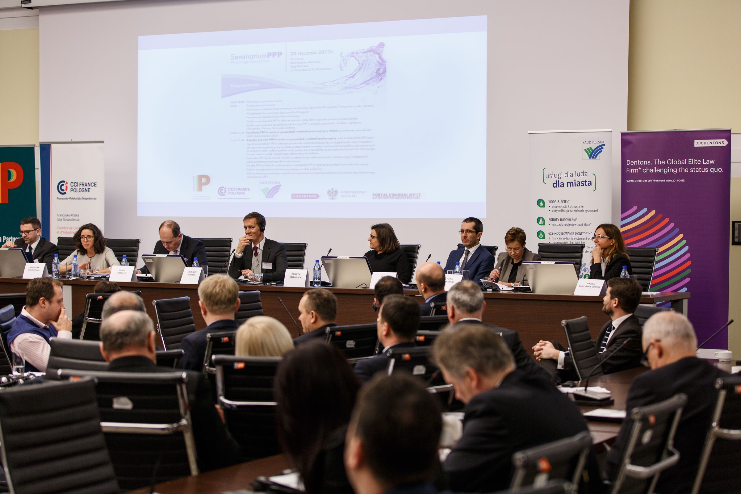 Wydarzenie zostało objęte honorowym patronatem Ministerstwa Rozwoju i było szans? na dialog w zakresie wyzwań projektów realizowanych w trybie PPP w branży wod -kan. Organizatorzy- Francusko- Polska Izba Gospodarcza, Fundacja Centrum PPP, Partner Strategiczny- Saur Polska oraz Partner Merytoryczny- Kancelaria Dentons przybliżyli problematykę tego typu rozwi?zań.