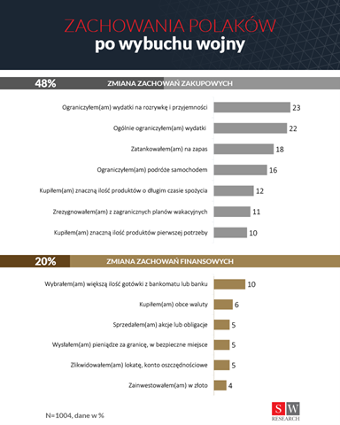 Połowa dorosłych Polaków w reakcji na wojnę w Ukrainie dokonała zmian w sposobie gospodarowania pieniędzmi, tak żeby zadbać o bezpieczeństwo w zakresie żywności i finansów – wynika z badania SW Research.