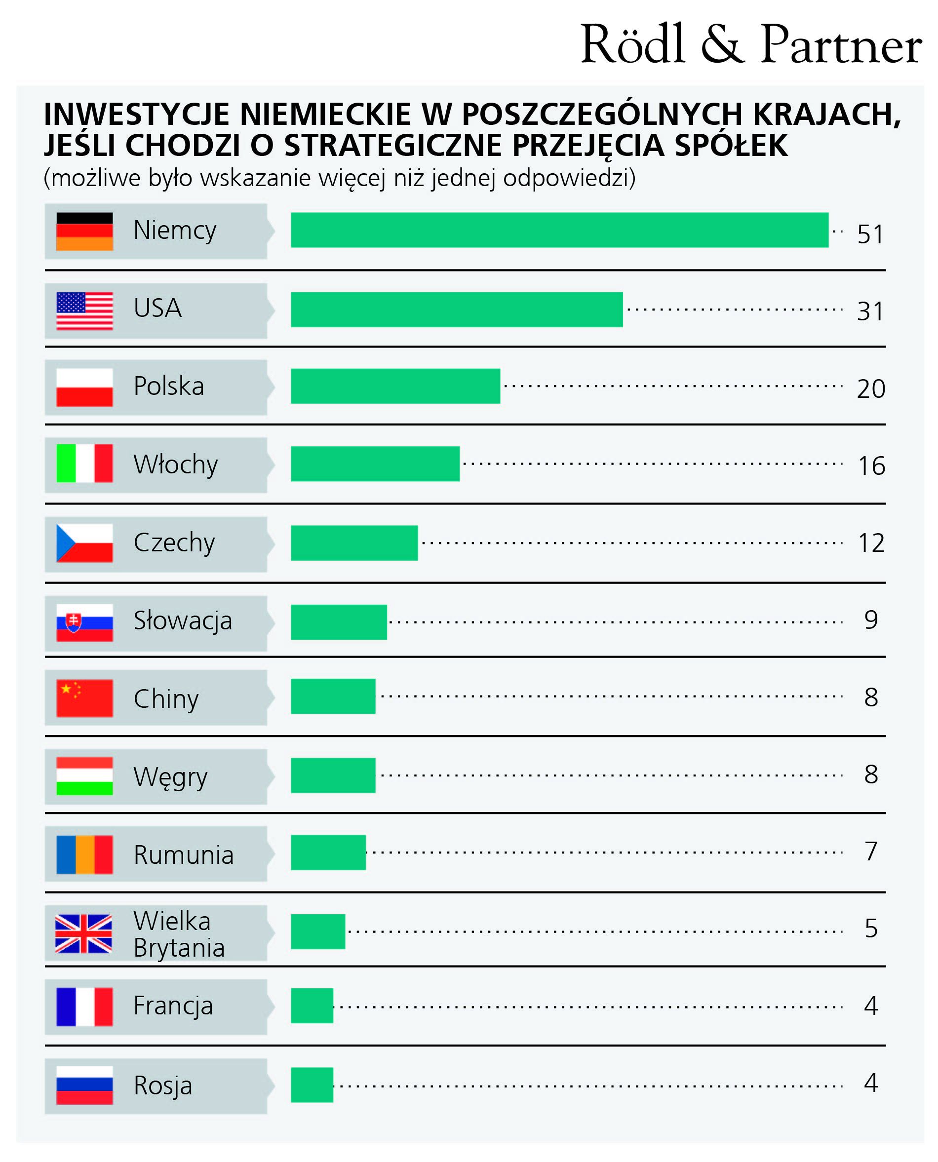 Niemieckie firmy rodzinne zdecydowanie preferuj? inwestowanie na rodzimym rynku, jednak równocześnie wci?ż trwa ich dynamiczna ekspansja na rynki światowe. Przeprowadzone przez firmę Rödl & Partner badanie aktywności niemieckich firm rodzinnych w obszarze inwestowania pokazuje, że najpopularniejszymi miejscami lokowania przez nie inwestycji zagranicznych s? Stany Zjednoczonej i kraje członkowskie Unii Europejskiej. W Europie najczęściej wybieranym krajem jest Polska. Wzrost zainteresowania pod k?tem inwestycji dotyczy również innych krajów Europy Środkowo-Wschodniej, takich jak Czechy i Słowacja. Znacznie mniejsz? popularności? ciesz? się natomiast państwa, które dotychczas miały pod tym względem siln? pozycję, m.in. Francja i Chiny.