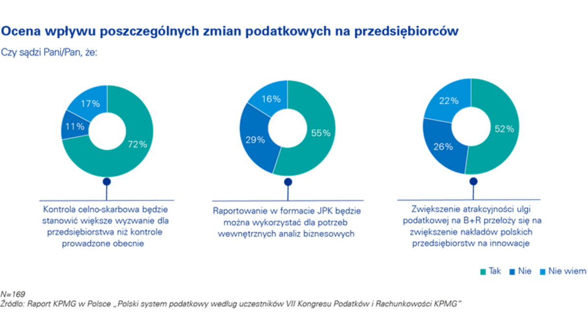 Raport KPMG w Polsce pt. „Polski system podatkowy wg uczestników VII Kongresu Podatków i Rachunkowości KPMG” zawiera wyniki badania dotycz?cego systemu podatkowego w Polsce przeprowadzonego 16 stycznia 2017 r. wśród uczestników VII Kongresu Podatków i Rachunkowości KPMG, tj. przedstawicieli kadry zarz?dzaj?cej, dyrektorów finansowych, głównych księgowych oraz szefów sprawozdawczości finansowej i controllingu. Badanie miało na celu poznanie oceny polskiego systemu podatkowego z punktu widzenia kadry najwyższego szczebla przedsiębiorstw z różnych branż z całej Polski. Na pytania odpowiedziało 169 osób.