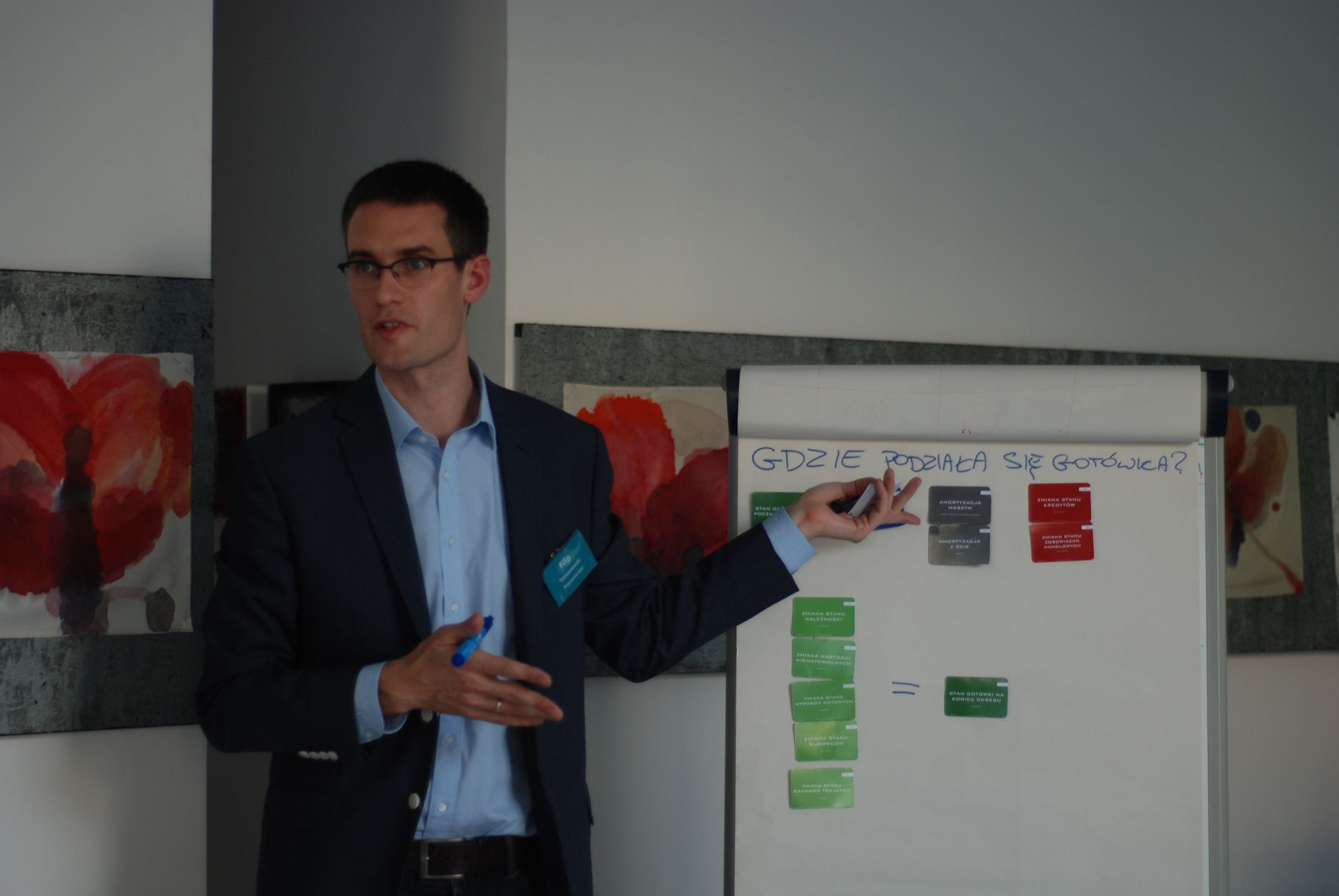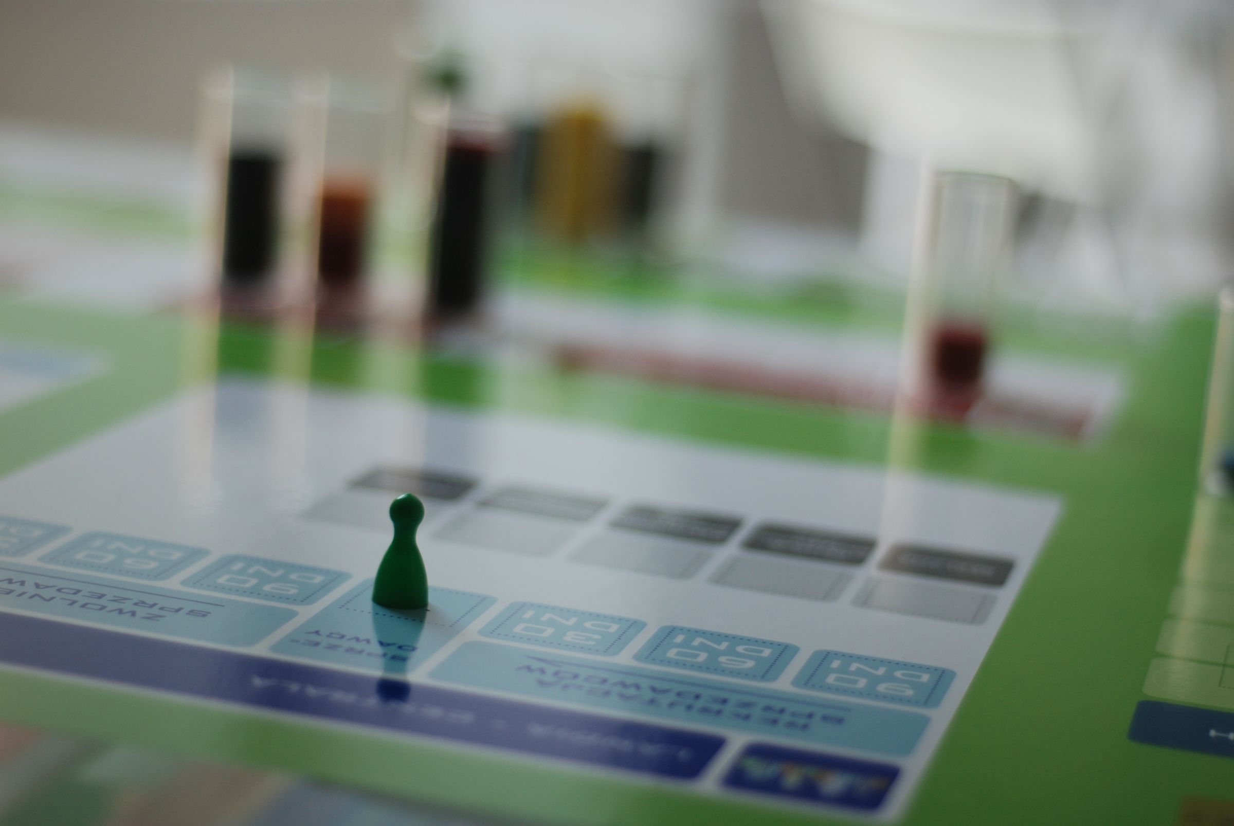 Wszystkie decyzje uczestników zobrazowane s? na planszy przy pomocy tub i żetonów, symbolizuj?cych aktywa/pasywa przedsiębiorstwa - ? ? rozwija to umiejętność widzenia perspektywy „przyczyna - ? ? skutek”.