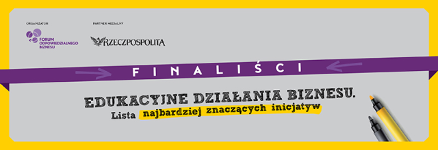 <p style="text-align: justify;"><strong>Podczas 6. Targów CSR - największego w Polsce wydarzenia poświęconego społecznej odpowiedzialności biznesu i zrównoważonemu rozwojowi, poznaliśmy finalistów projektu: "Edukacyjne działania biznesu. Lista najbardziej znaczących inicjatyw". Jego pomysłodawcą jest Forum Odpowiedzialnego Biznesu, a partnerem medialnym dziennik Rzeczpospolita. 10 inicjatyw edukacyjnych zostało najwyżej ocenionych w głosowaniu internetowym, a wcześniej zakwalifikowane przez kapitułę do ścisłej 51.</strong></p>