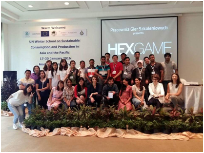 <p style="text-align: justify;"><a href="http://pracowniagier.com/">Pracownia Gier Szkoleniowych</a> została zaproszona do Tajlandii do poprowadzenia warsztatu dla uczestników drugiej zimowej szkoły United Nations, poświęconej tematowi zrównoważonej konsumpcji i produkcji w rejonie Azji i Pacyfiku. Zajęcia rozpoczynają się już 17 stycznia i potrwają dwa tygodnie. Uczestnikami szkoły są młodzi liderzy – przyszli decydenci – z krajów rozwijających się z tego regionu.</p>
