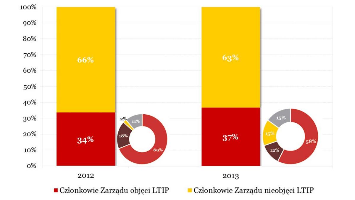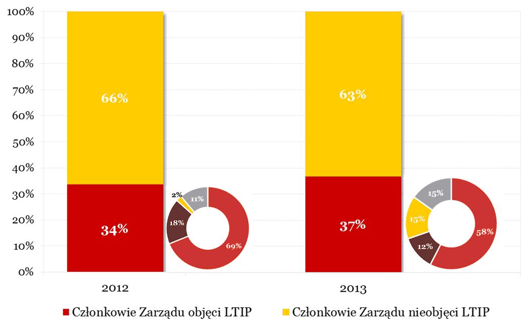 Jak wynika z tegorocznego badania wci?ż zaledwie mniej niż połowa spółek oferuje mechanizmy długoterminowej motywacji kadry zarz?dzaj?cej, choć w porównaniu do 2012 r. odnotowujemy 3% wzrost zainteresowania motywatorami długookresowymi.